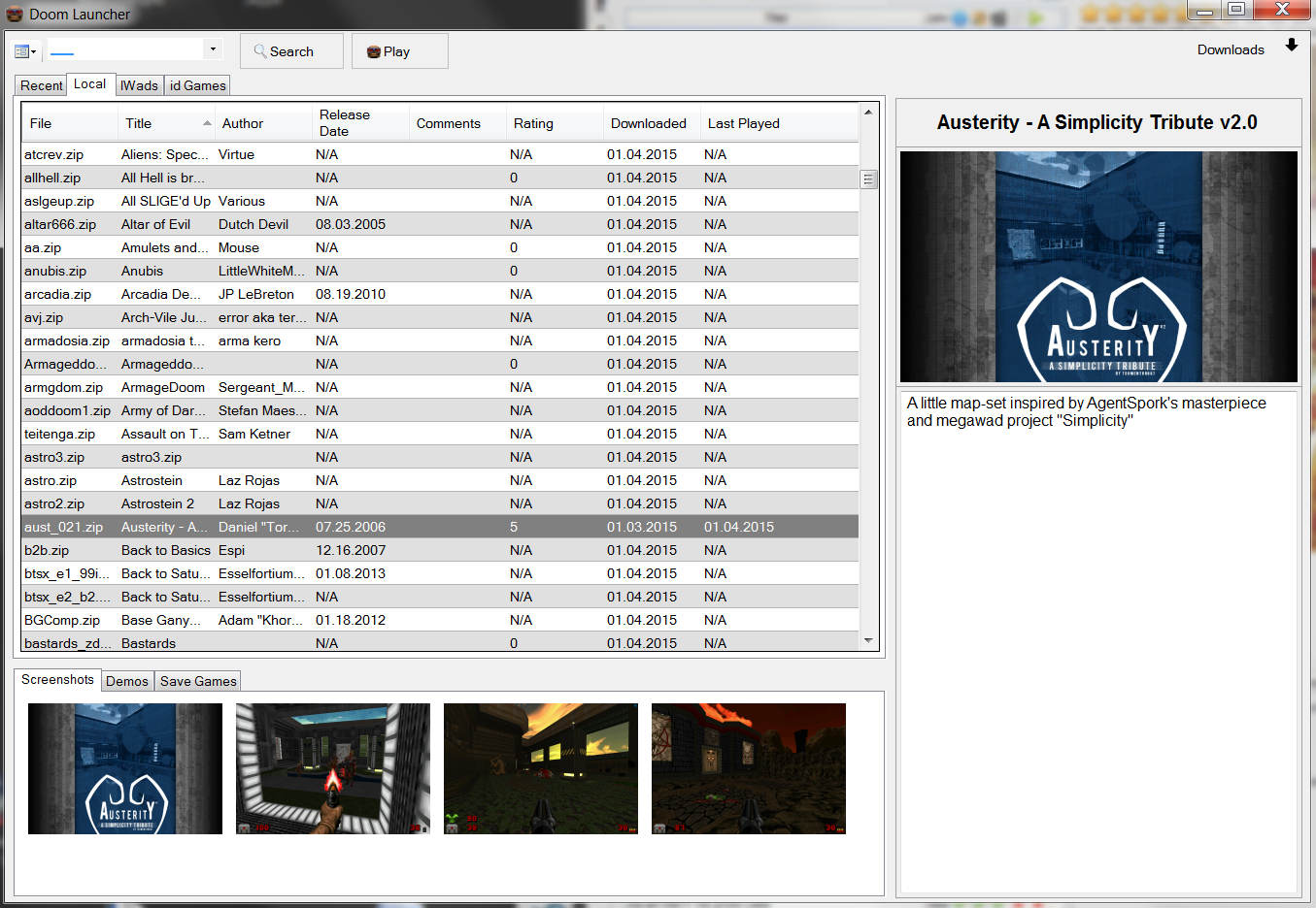 A few days ago, hobomaster22 has released his latest development version of his Doom frontend DoomLauncher updating it to 0.9.3 and nearing a final release. So what's so special about yet another frontend for Doom? Quite easy to tell: This one's the best in terms of organizing your own database and downloading stuff from /idgames on the fly. It currently features adding various sourceports, automatically adding screenshots to the frontend, organizing IWADs and PWADs, automatic download and integration from /idgames archives, scraping wad information directly from the .txt-file, manual editing of details per entry, a rating function as well as a "last time played" column and many more interesting things. Download the tool, try it, organize your wad archive and let the author know what you think about it or give him some feedback about bugs, feature requests or improvements in the official development thread.