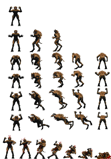Following the making of a proper werewolf, I got the sprites from the Daggerfall werewolf and added the missing of the death animation and created new ones for its See state (after the human will transform into it) and for a leap attack.
